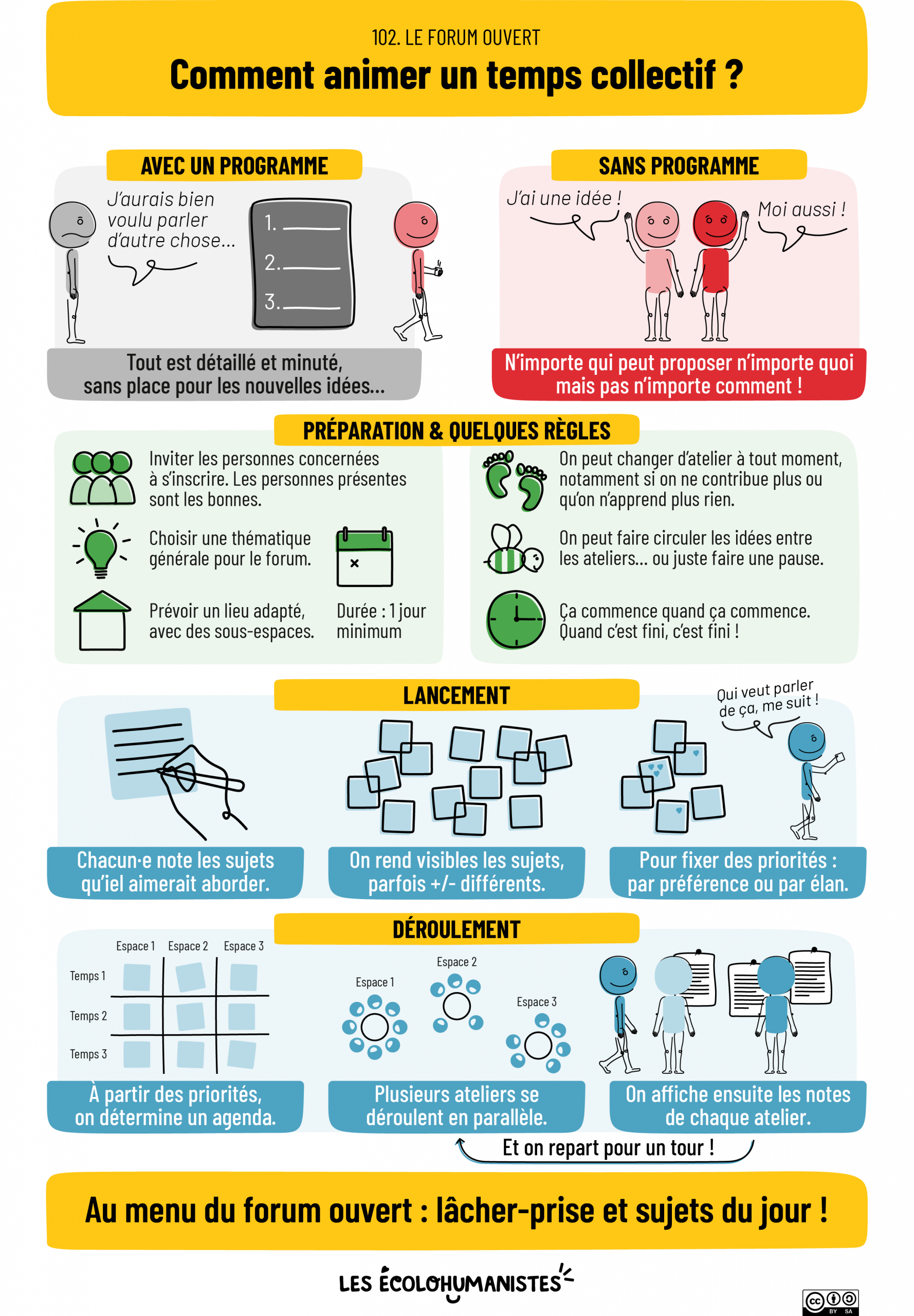 Voici quelques éléments qui nous semblent importants afin de réussir votre forum ouvert. Éléments dont nous avons notamment pu discuter avec nos collègue Cécile & Louise de la formation à la coopération Animacoop : merci à elles !